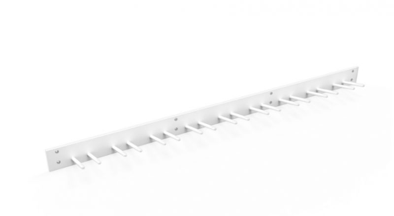 The Wall Mounted Lead Apron Peg Rack is a strong lead apron rack made of heavy gauge steel with an electro-magnetic powder coating. When securely mounted to a wall, this Phillips Safety rack can hold 9 aprons.